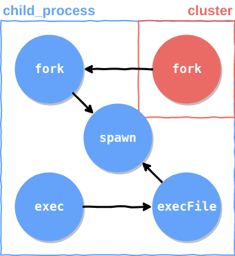 }As you can see, the cluster is directly dependent on the fork() method, and if we'll take a look