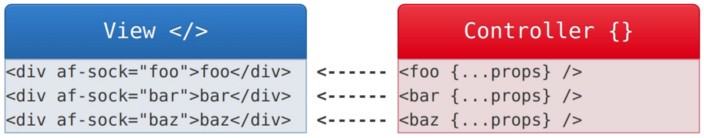 To solve that problem, Appfairy takes on an old school approach where we separate the component into a view and a controller, where we treat the view as a black-box and don't touch it while the controller is controlling what's going on in there; it would tell the view what to render, when to render, and how to render.