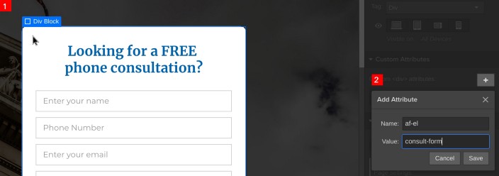 new attribute; the key's going to be af-el (Appfairy element) and the value should be set to the